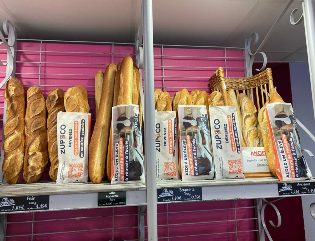 Pour sensibiliser contre les inégalités scolaires et inciter le public à devenir mentor, ZUPdeCO s’affiche dans votre boulangerie ! Une campagne de sensibilisation menée avec Epibag sur les sacs à pain, diffusée dans 100 boulangeries situées à Paris, en Île-de-France, à Blois et à Lyon. Cette action permet ainsi à ZUPdeCO de toucher un large public dans des lieux de vie et de proximité, pour attirer l’attention sur le décrochage scolaire et susciter l’engagement !